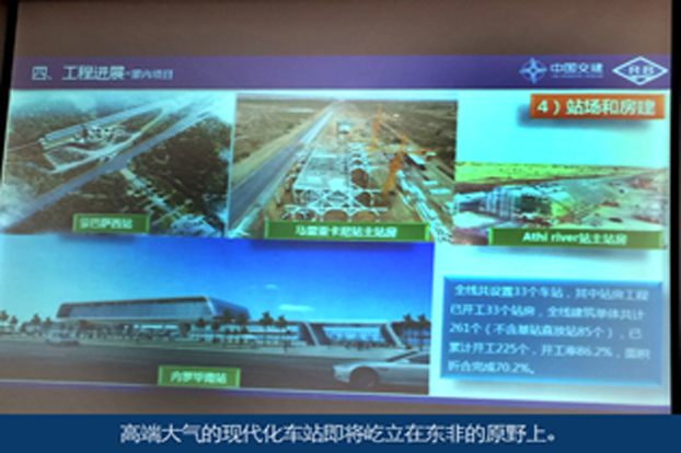2017年,由中國交建總承包、中國路橋承建的肯尼亞蒙巴薩—內羅畢鐵路將通車。屆時,東風機車頭牽引的列車將從非洲巴黎……內羅畢啟程,奔向神奇的東非原野,迎著赤道線上的雪峰,跨過人類起源的東非大裂谷,與世界最大的自然野生動物保護區(qū)王國中的獅群和大象們親密接觸……